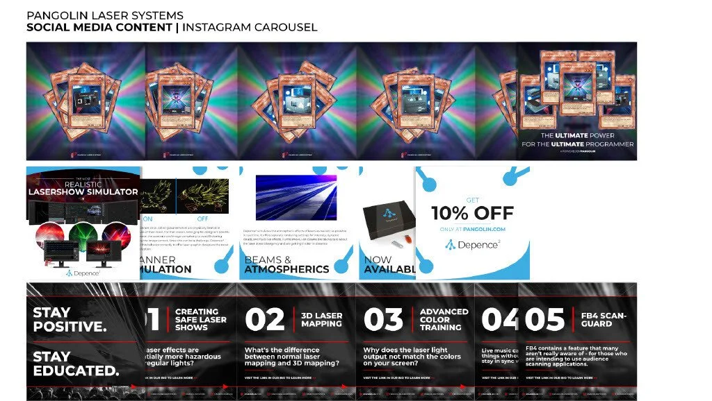 A brief summary below of all projects done for Pangolin Laser Systems. All projects were done during COVID and crafted solely by me. Creative Director, Lyra Letourneau finalized all creative endeavors.